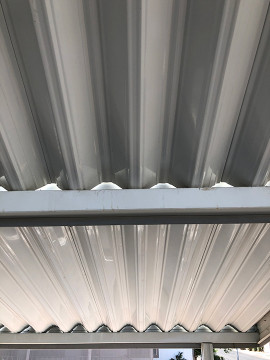 Very often we will build carports from the same Ambassador Pan system that we use for awnings. These structures offer all of the benefits of a solid attached or free-standing cover, but at a much cheaper price. In other words, awnings will typically be the cheaper option for covering the area you want covered, but give you all of the benefits of a regular Alumawood or Elitewood patio cover.