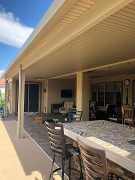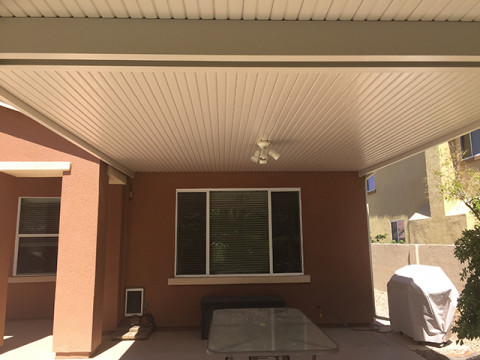 Patio Covers which are insulated are built differently than those not insulated. The panels are 4’ wide and are basically a giant piece of styrofoam with a durable aluminum shell.